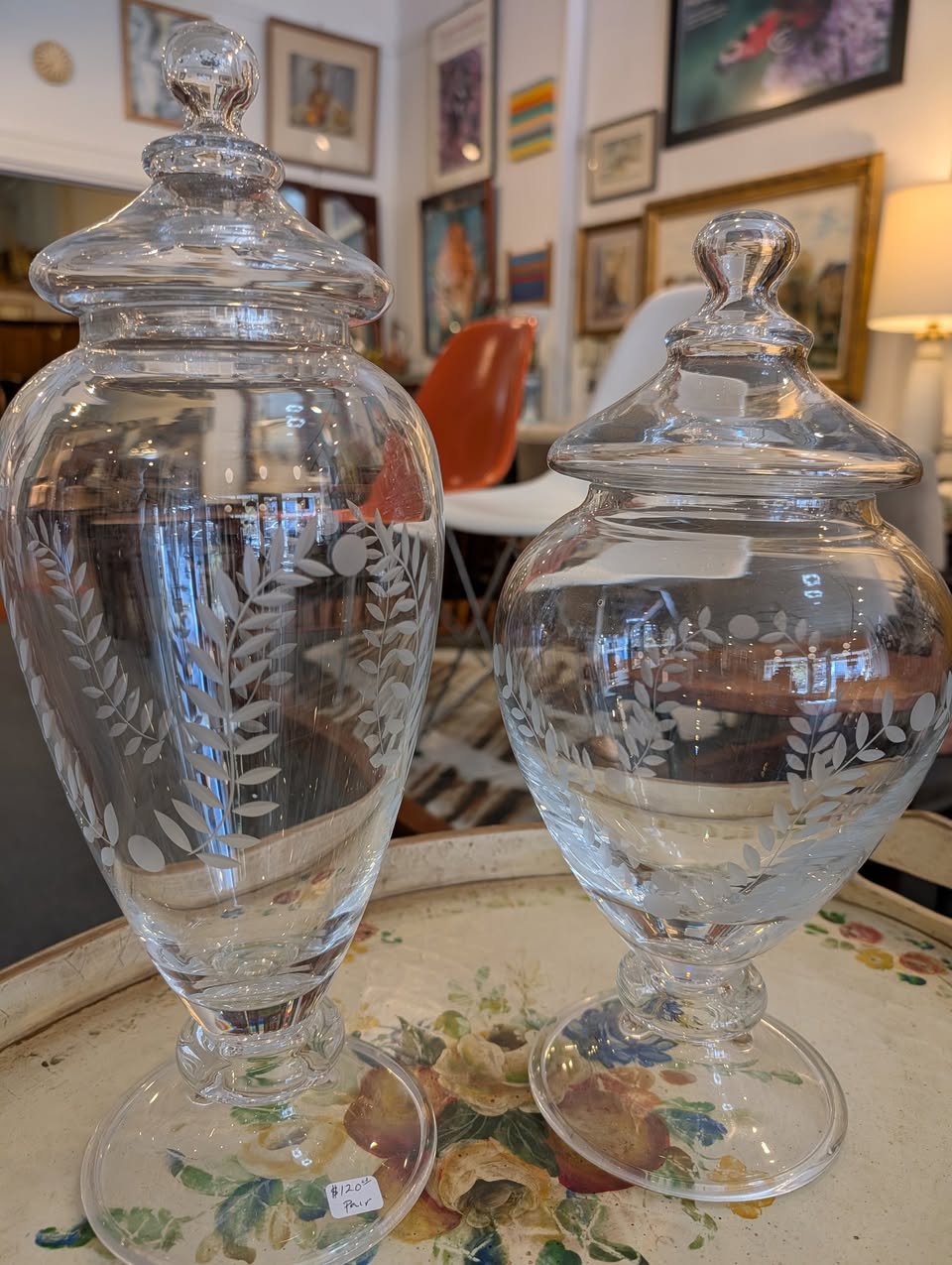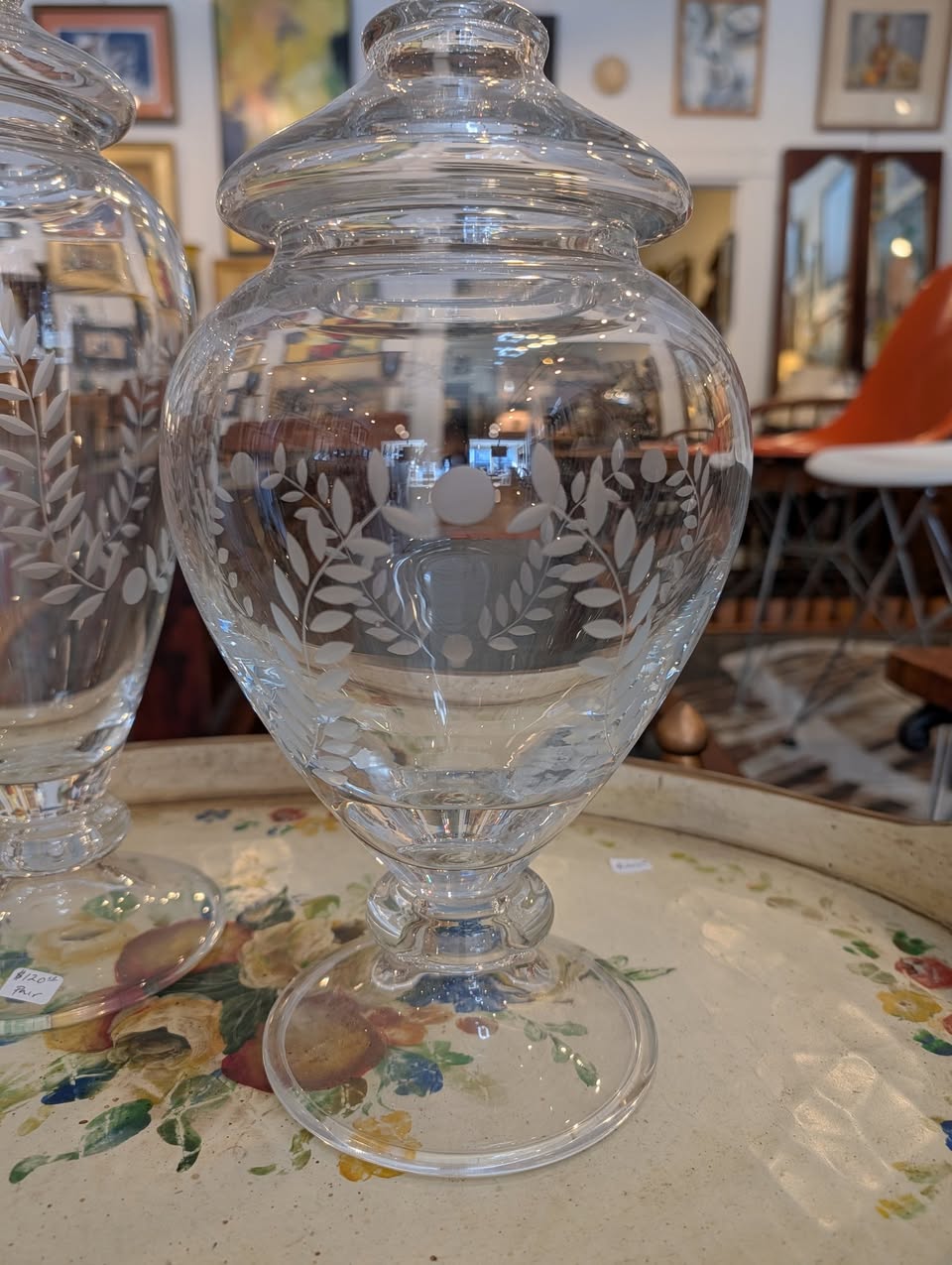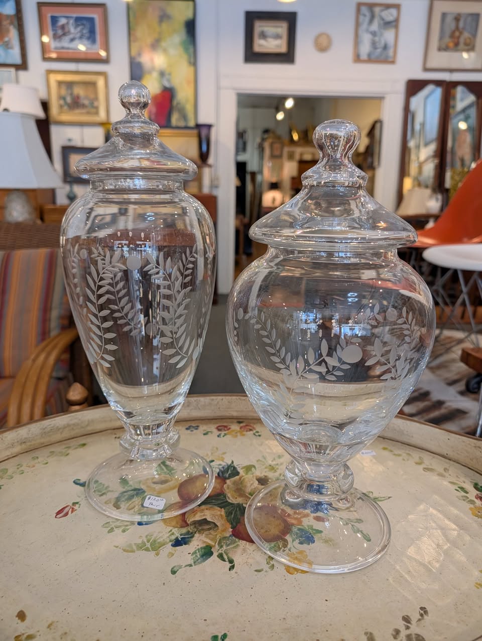 Etched Crystal Apothecary Jars / Candy Jars